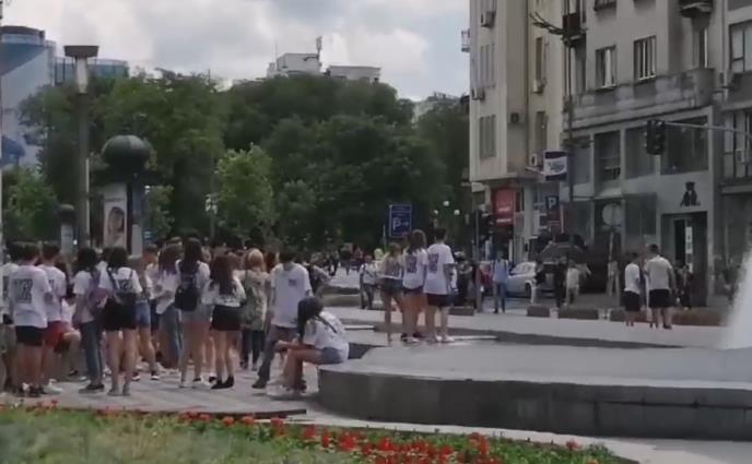 Neki od njih su odlučili da se bućnu u fontanu na ovom trgu, što je već postala tradicija među školarcima u prestonici.