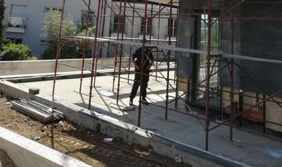 BEOGRAD - Deo skele se otkačio i pao na parkirani autmobil u Ulici Ilije Garašanina kod Palilulske pijace u Beogradu, prenosi RTS.