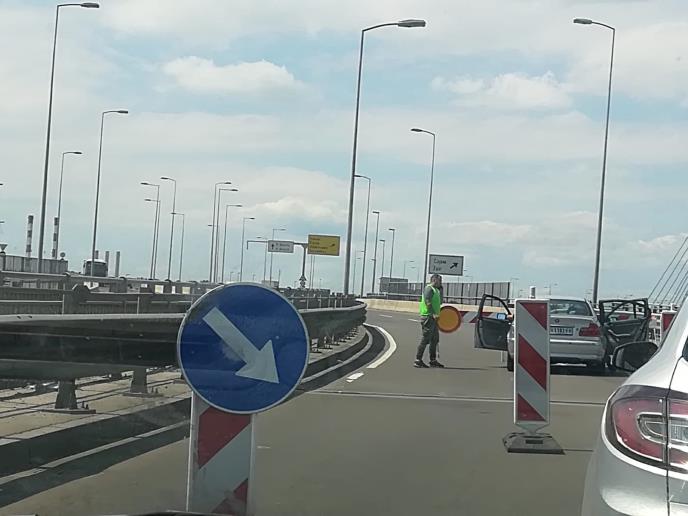 Posle pogrešnog skretanja, oko 10 časova, Jovan K. (81) iz Obrenovca našao se na tramvajskim šinama nasred mosta. Vozio je sa čukaričke strane preko mosta dugog oko kilometar gotovo do novobeogradske strane, kada su točkovi automobila upali u spojnice.
