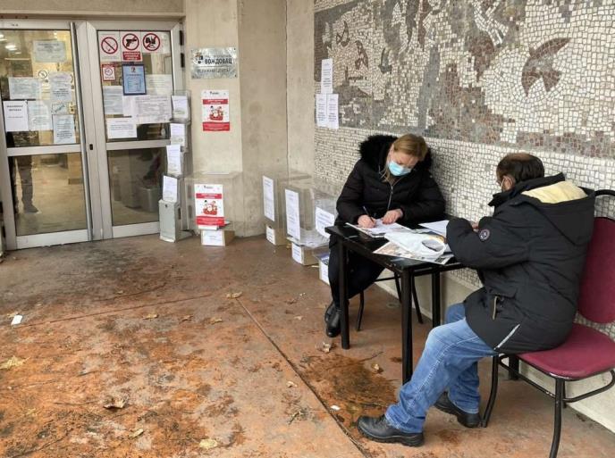 Uslužni centar GO Voždovac zbog sprovođenja epidemioloških mera nije u mogućnosti da primi u svoje prostorije više od dve stranke istovremeno, pa su ispred ulaza postavljene kutije, obrasci i sto za popunjavanje istih.