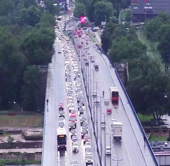 Kolapsu na ulicama doprinela je i kiša koja pada u srpskoj prestonici, a najopterećeniji su mostovi, posebno Gazela u oba pravca, kao i Brankov i Pančevački most u smeru ka gradu.