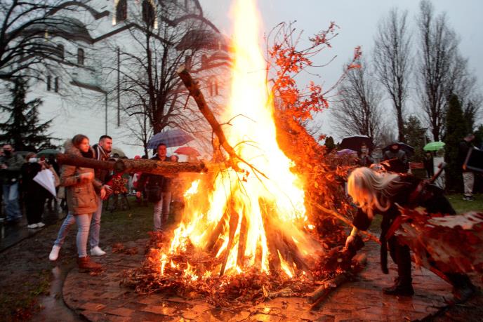 Paljenje badnjaka ispred Hrama svetog Save Izvor: Kurir