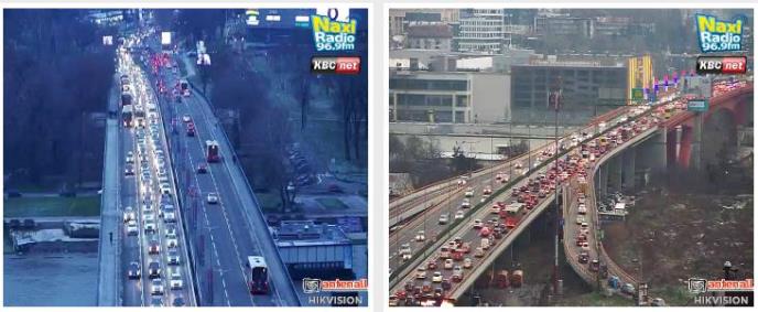 Prema snimcima sa Naxi kamera možemo videti da je na Brankovom mostu, u smeru ka gradu, totalni kolaps.