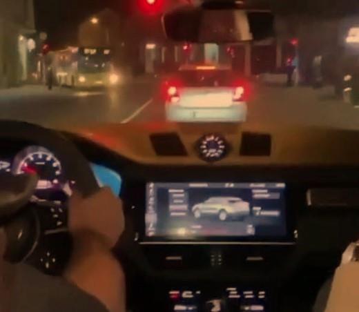 Na snuimku se vidi i kako su se osobe koje je vozio veoma uplašile, a samo je prisebnost jednog od putnika sprečila nesreću, jer je vozač umalo naleteo na osobu koja je prelazila pešački prelaz. Da ga njegov suvozač nije glasno upozoravao, udar bi bio gotovo siguran.