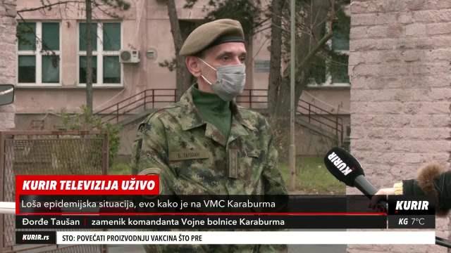 Đorđe Taušan, zamenik komandanta Vojne bolnice Karaburma epidemiološku situaciju ocenio je kao tešku, pre svega jer je popunjenost kapaciteta u toj zdravstvenoj ustanovi 90 odsto, da je 90 odsto njih na kiseoničkoj potpori i zbog stopostotne popunjenosti kapaciteta u nekovid bolnicama.