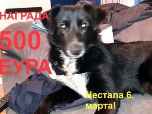 Nestala je 6. marta, čipovana je i srednjeg rasta a odaziva se i na ime Aki. Crne je boje sa belim cvetom na grudima.
