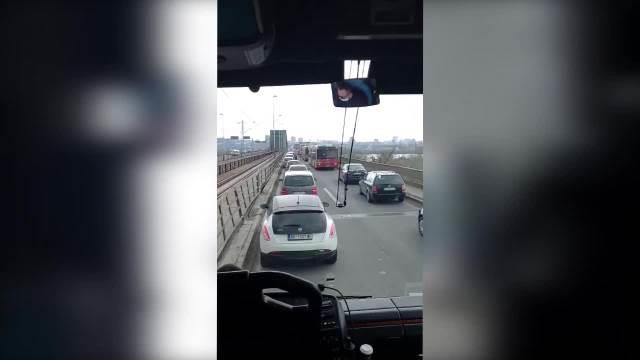 Veliki zastoj u saobraćaju, prema nezvaničnim informacijama, izazvalo je improvizovano vozilo za prevoz sekundarnih sirovina, koje se nešto posle 12 sati prevrnulo na mostu u smeru ka Beogradu.