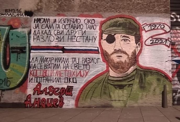 Na platou Milana Mladenovića kod Doma omladine u Beogradu osvanuo je mural posvećen nedavno preminulom ruskom dobrovoljcu sa Kosova i Metohije Albertu Andijevu.