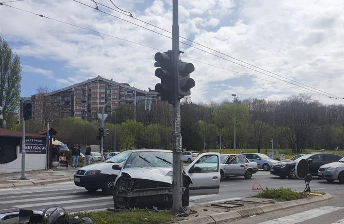 Kako se može videti na fotografijama, automobil se pretnjim delom automobila zakucao u semafor koji se nalazi na raskrsnici.