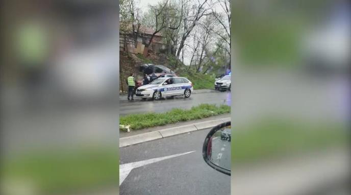 SAOBRAĆAJKA U BEOGRADU: Automobil se popeo na breg pored puta