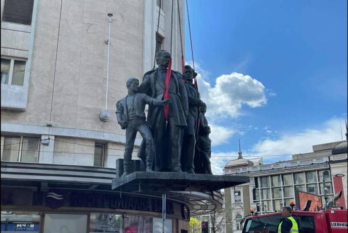 BEOGRAD - Čuvena skulptura "Sima Igumanov sa siročićima", koju su 1950. godine skojevci uništili čekićima, vraćena je danas na krov Igumanove palate na Terazijama.
