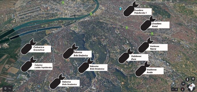 Prema podacima Centra, na području Beograda i beogradskih opština, trenutno se nalazi 16 neekspodiranih velikih avio-bombi iz 1999. godine. Prema evidenciji, koja se vodi, u Srbiji se na preko 150 lokacija nalaze velike avio-bombe, ističe Bojan Glamočlija.