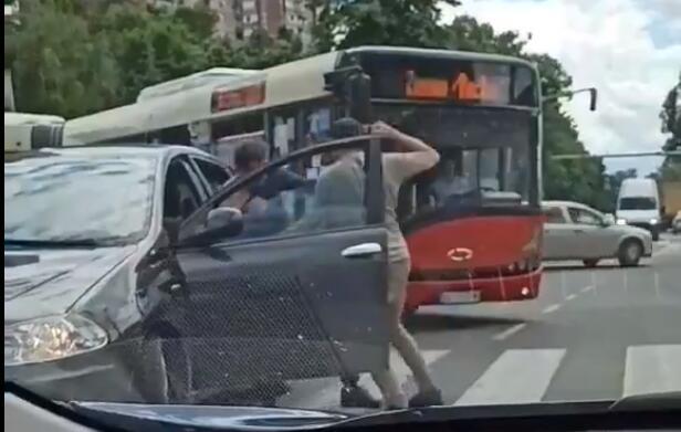 Kako se vidi na snimku, ova dvojica su, pretpostavimo nakon prepirke u toku vožnje, izašla iz svojih vozila i otpočela obračun prilikom kojeg su potpuno blokirali saobraćaj u tom delu.