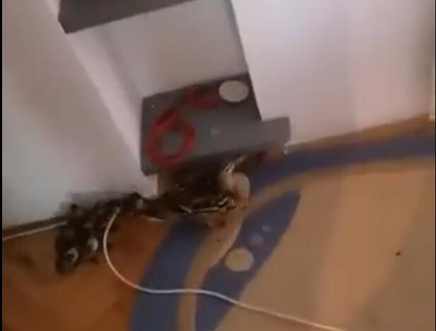 Naime, na Tviteru je osvanuo simpatičan video na kome se mogu videti, patka i njenih 9 pačića koji hodaju po stanu.