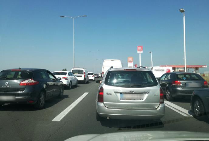 Na auto-putu Beograd-Zagreb, blizu aerodroma, formirana je kilometarska kolona vozila.