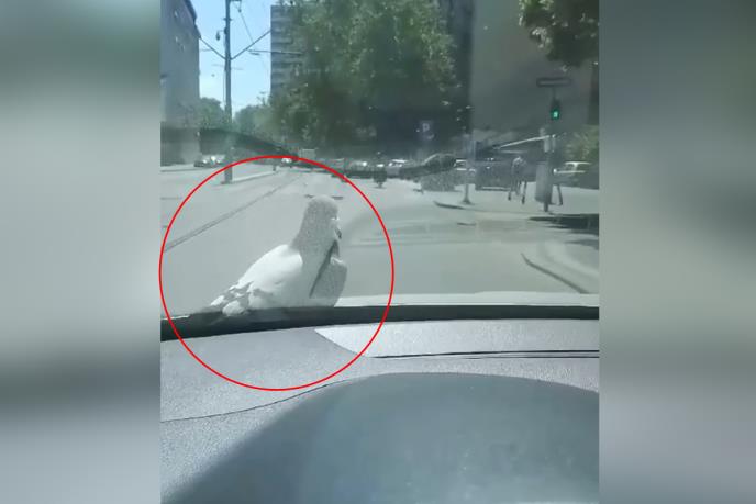 Na društvenim mrežama se pojavio snimak goluba koji je sleteo na haubu automobila i uživa tokom vožnje kroz Vojvode Stepe na Voždovcu.