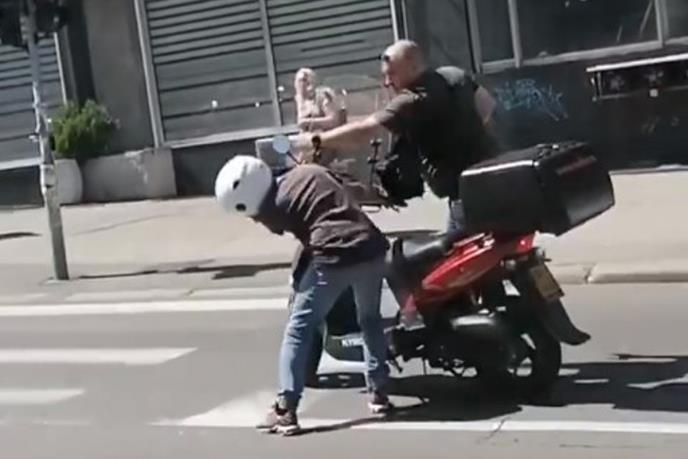 Nasred Makenzijeve ulice u Beogradu, dogodio se nesvakidašnji incident kada je kako se može videti na snimku, pešak udario motociklistu.