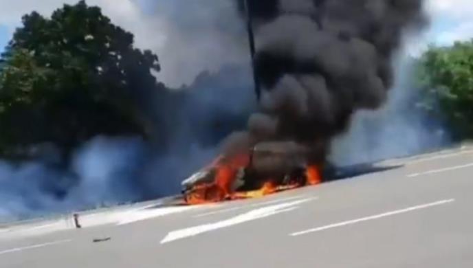 Vatra je zahvatila celo vozilo, a gusti crni dim se nadvio nad celim tim delom puta.