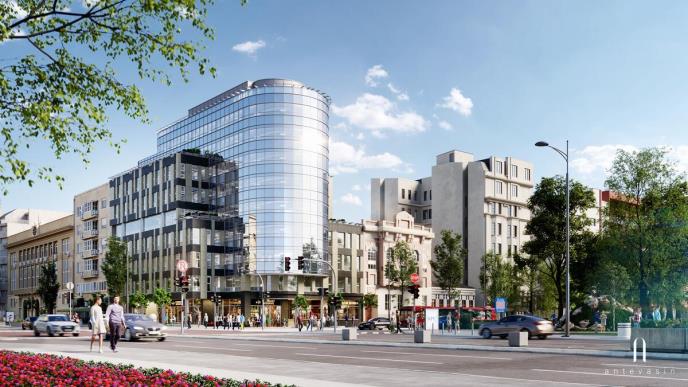 Ovaj savremen poslovni objekat poseduje 8,300 kvadratnih metara za izdavanje na ukupno 9 spratova i podzemnu garažu na dva nivoa.