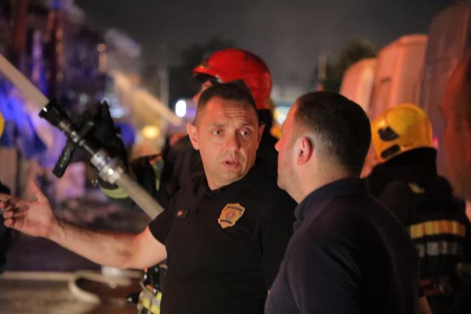 ALEKSANDAR VULIN STIGAO U BLOK 70: Ministar policije sa vatrogascima na mestu strašnog požara u Kineskom tržnom centru (VIDEO)