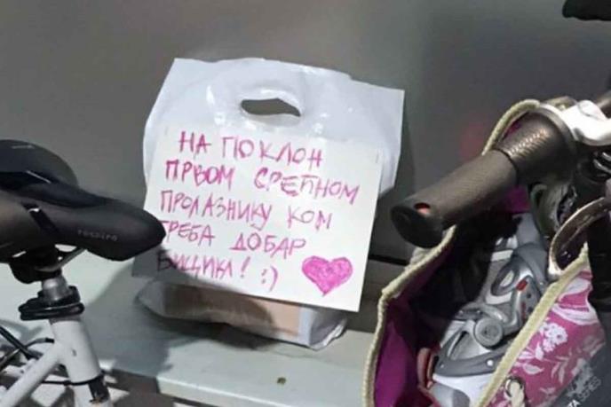 Naime, neko od građana je očigledno želeo da pokloni svoj bicikl, te ga je ostavio na ulici, ali uz posvetu.