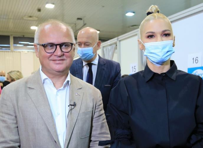 BEOGRAD - Zamenik gradonačelnika Beograda Goran Vesić obišao je vakcinalni punkt na Beogradskom sajmu, gde je danas trećom dozom vakcinisana estradna umetnica Nataša Bekvalac.