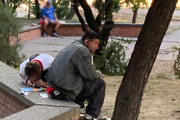 Baš tu, na putu za autobusko stajalište i obližnji tržni centar, u parkiću i to naočigled svih u po bela dana, dvojica muškaraca srednjih godina sela su a jedan od njih nagnuo se nad zidić i šmrče?!