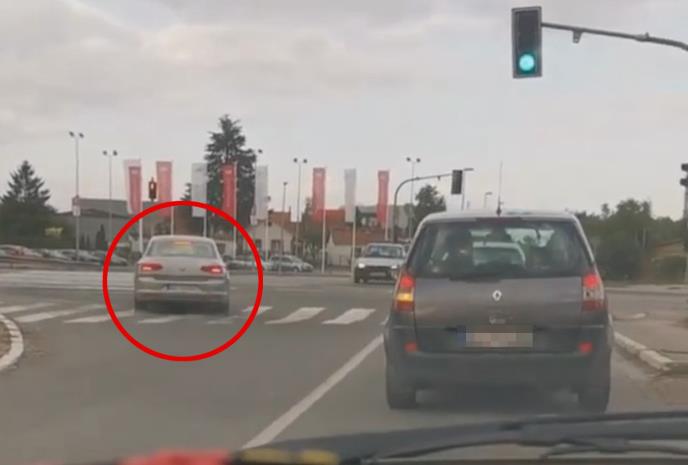 Na snimku se vidi vozač "folksvagena" koji nije želeo da stoji u koloni na raskrsnici već je bahato prošao pored nje i to izbegavajući vozila koja su u tom trenutku krenula iz suprotnog smera.