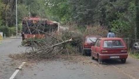 U Oplenačkoj ulici na Petlovom brdu vetar je iščupao drvo iz korena te je ono palo na autobus koji saobraća na liniji 56.