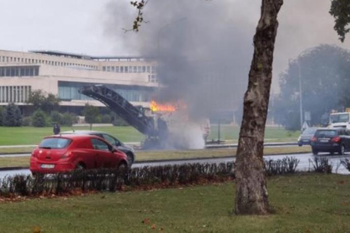 U Bulevaru Mihajla Pupina, u blizini Palate Srbija, došlo je do požara na jednoj od mašina za asfaltiranje Beograd Puta.