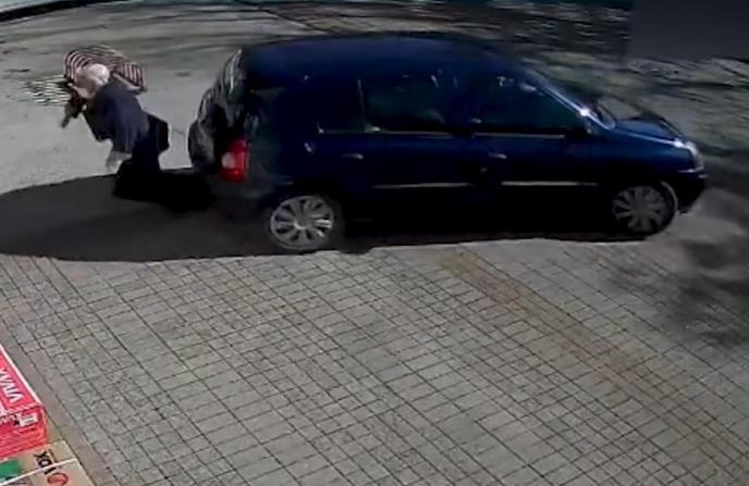 Zadnji deo vozila je udario ženu, koja je pala i ostala nepomično da leži. Vrlo brzo je izašao stariji čovek koji je krenuo ka automobilu, a starici su pomogle dve žene.