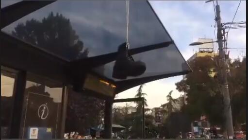 Naime, kako se može videti na snimku koji je objavljen na Instagram storiju profila "moj_beo_grad", cipela koja je pertlama zakačena za autobusko stajalište visi u sred bela dana na Slaviji.