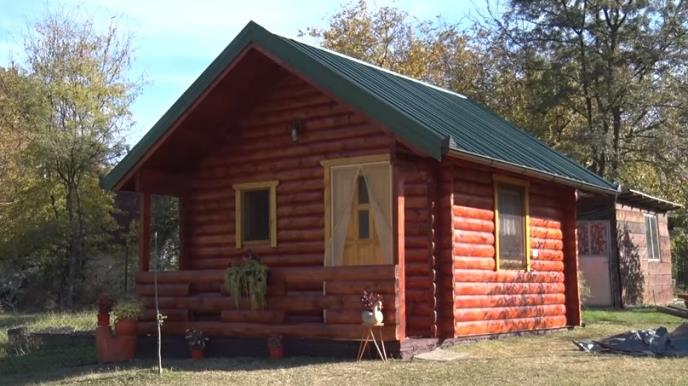 Njihovo dvorište u zabranu odnedavno krasi kućica - brvnara kao iz bajke, objavio je obrenovački RTV Mag.