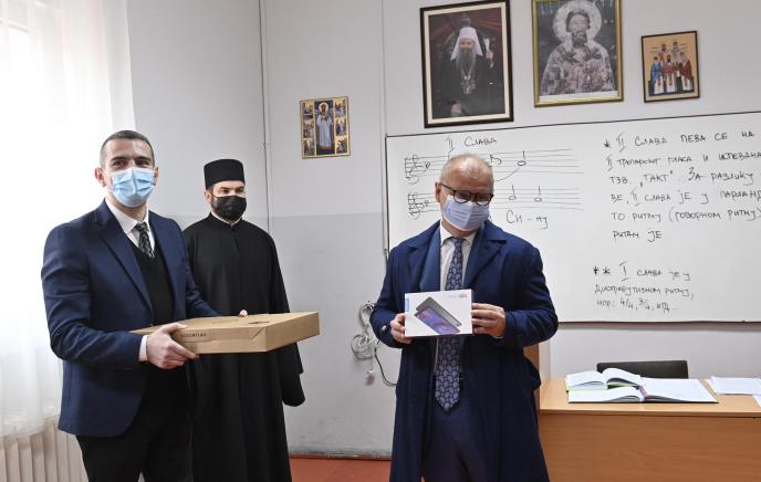 Rektor Bogoslovije Radomir Vrućinić zahvalio je Gradu Beogradu na donaciji tableta i laptopova, istakavši da će uređaji olakšati nastavni rad i komunikaciju profesora i učenika.