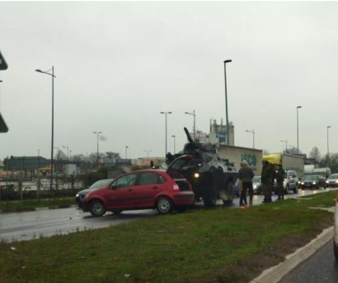NESVAKIDAŠNJI UDES! SUDAR OKLOPNOG VOZILA I AUTOMOBILA U ZEMUNU: Stvorila se velika kolona vozila (FOTO)