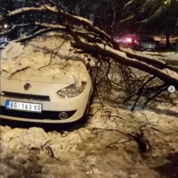 Na više mesta u Begradu i danas je padalo drveće, kako se pretpostavlja usled težine snega, a tom prilikom oštećeno je nekoliko parkiranih automobila.