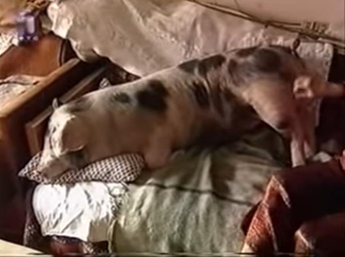 Baka s Banovog brda tada je pred kamerama pokazala i kako je njena Cica poslušna i kako njeno prasence, koje je polako raslo u krmaču, ume na komandu lepo da legne na krevet pa još stavi i glavu na jastuk.