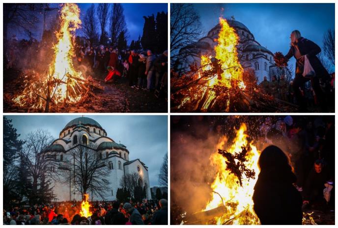 Ispred Hrama Svetog Save u Beogradu danas je tradicionalno, na Badnje veče, zapaljen badnjak, koji je prethodno osveštan tokom službe sveštenstva tog hrama, koju je predvodio vladika Stefan.