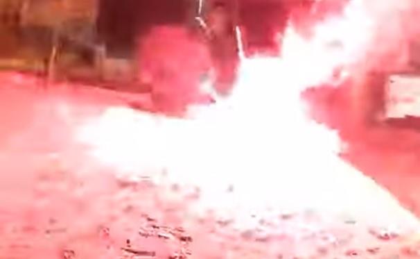 Na snimku se vidi muškarac koji pali vatromet i u trenutku se pretvara u buktinju.