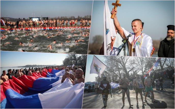 NIKOLA IZ POLICIJSKE BRIGADE PRVI DOPLIVAO DO ČASNOG KRSTA U ZEMUNU: Tradicionalno plivanje na Bogojavljenje (FOTO)