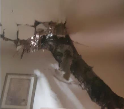 Udarac je bio toliko jak da je masivno stablo probilo kosi krov kuće i uletelo u jednu od prostorija kao da je u pitanju raketa.