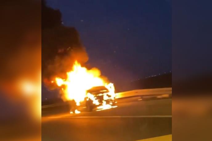 Na auto-putu pre odvajanja za Beograd iz pravca Ostružnice putnici koji su prolazili ovom deonicom naišli su na stravičan prizor - automobil koji je ceo bio u plamenu.