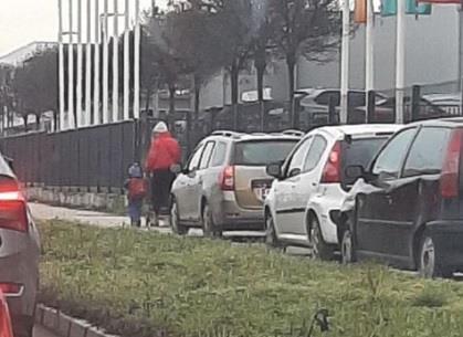 Na društvenim mrežama je objavljena fotografija žene koja se sa svoje dvoje dece, od kojih je jedno beba u kolicima, kreće po trotoaru pored Obrenovačkog puta, delu ulice koji je strogo zabranjen za motorni saobraćaj.