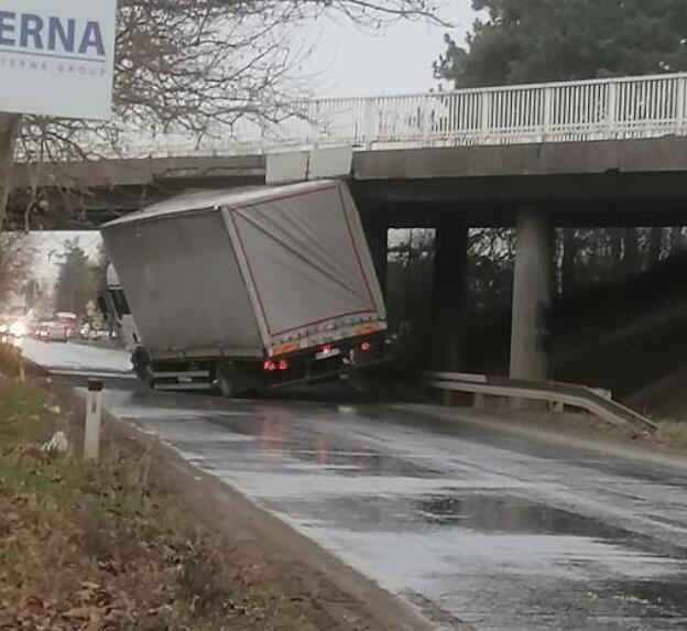 Kamion je prvo udario u nadvožnjak, nakrivio se i ostao zaglavljen.