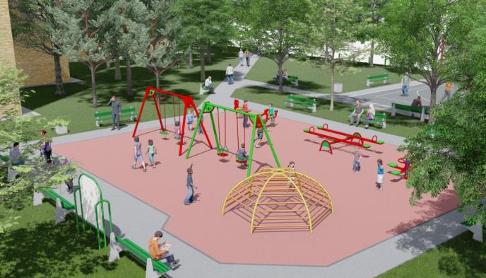 Na ovoj površini planirano je formiranje dečjeg igrališta za mlađu i stariju decu sa sedam rekvizita (ljuljaška sa dva zatvorena sedišta, ljuljaška sa dva otvorena sedišta, penjalica „Iglo”, vrteška, klackalica i dve njihalice). Svi rekviziti biće postavljeni na gumenu podlogu u skladu sa Pravilnikom o bezbednosti dečjih igrališta, navedeno je u saopštenju „Zelenila”.