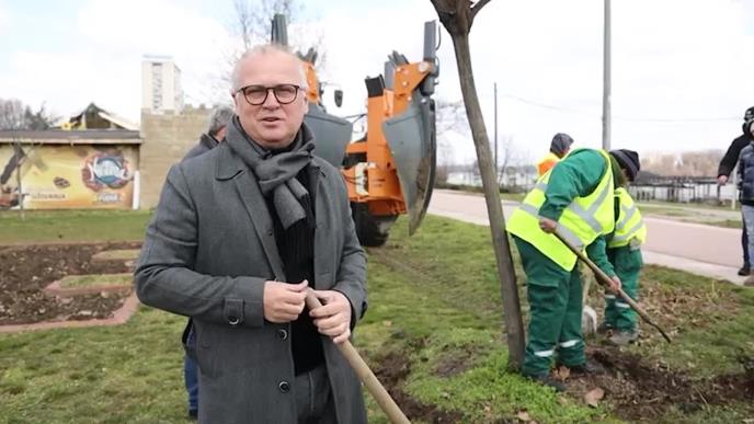 Zamenik gradonačelnika Beograda Goran Vesić prisustvovao je presađivanju stabala u parku "Nikola Tesla" u Novom Beogradu.