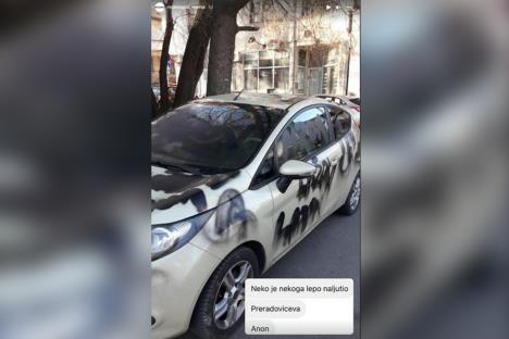 BG OSVETA?! KOME SI SE TI DRUŽE ZAMERIO: Išarali mu auto do neprepoznatljivosti, ceo ispisan rečima na P, a nacrtana i ona stvar