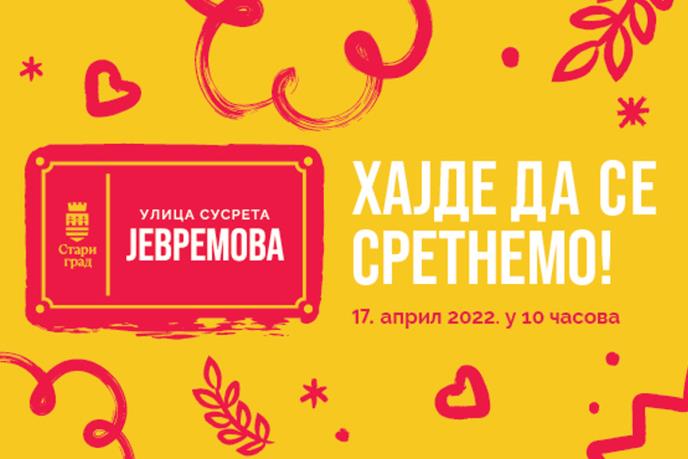 Tradicionalna manifestacija ”Jevremova ulica susreta” nakon dve godine pauziranja, ove godine održaće se u nedelju 17. aprila na dan opštinske slave, Cveti. Pod sloganom ”Hajde da se sretnemo” u periodu od 10 do 18 časova u Jevremovoj ulici, na potezu od Višnjićeve ulice do ulice Knjeginje Ljubice, održaće se raznovrstan program. Od svog osnivanja, ova popularna manifestacija promoviše komšijsku slogu, dobro druženje i prave vrednosti.