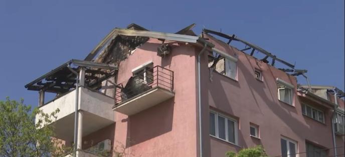 Nekoliko centimetara gareži na stepenicama, kablovi još vise, ulazna vrata iskrivljena. Krova nema, a miris paljevine se još oseća na ulazu zgrade.