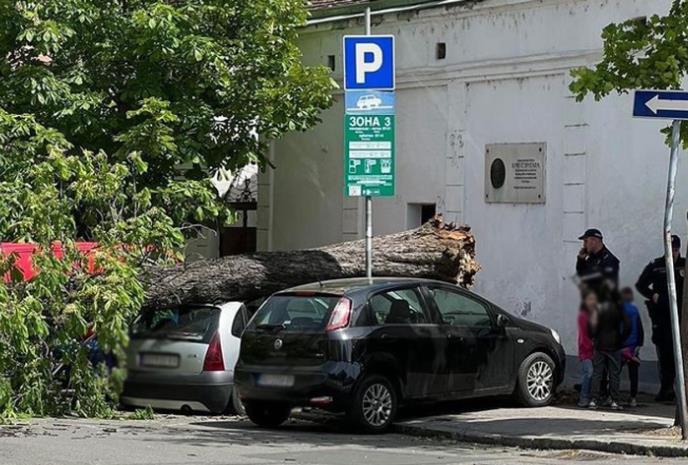 Prilikom pada, drvo je oštetilo više automobila koji su bili parkirani.